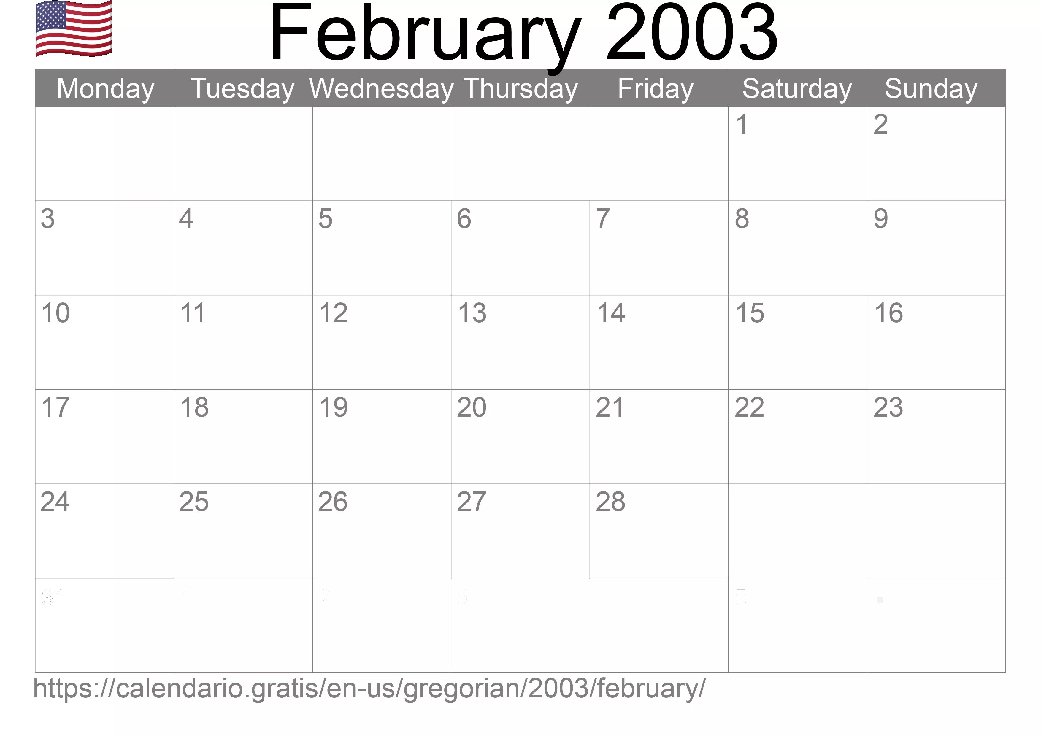 If you are looking for Calendar February 2003 from United States of America in English, you are in the right place.